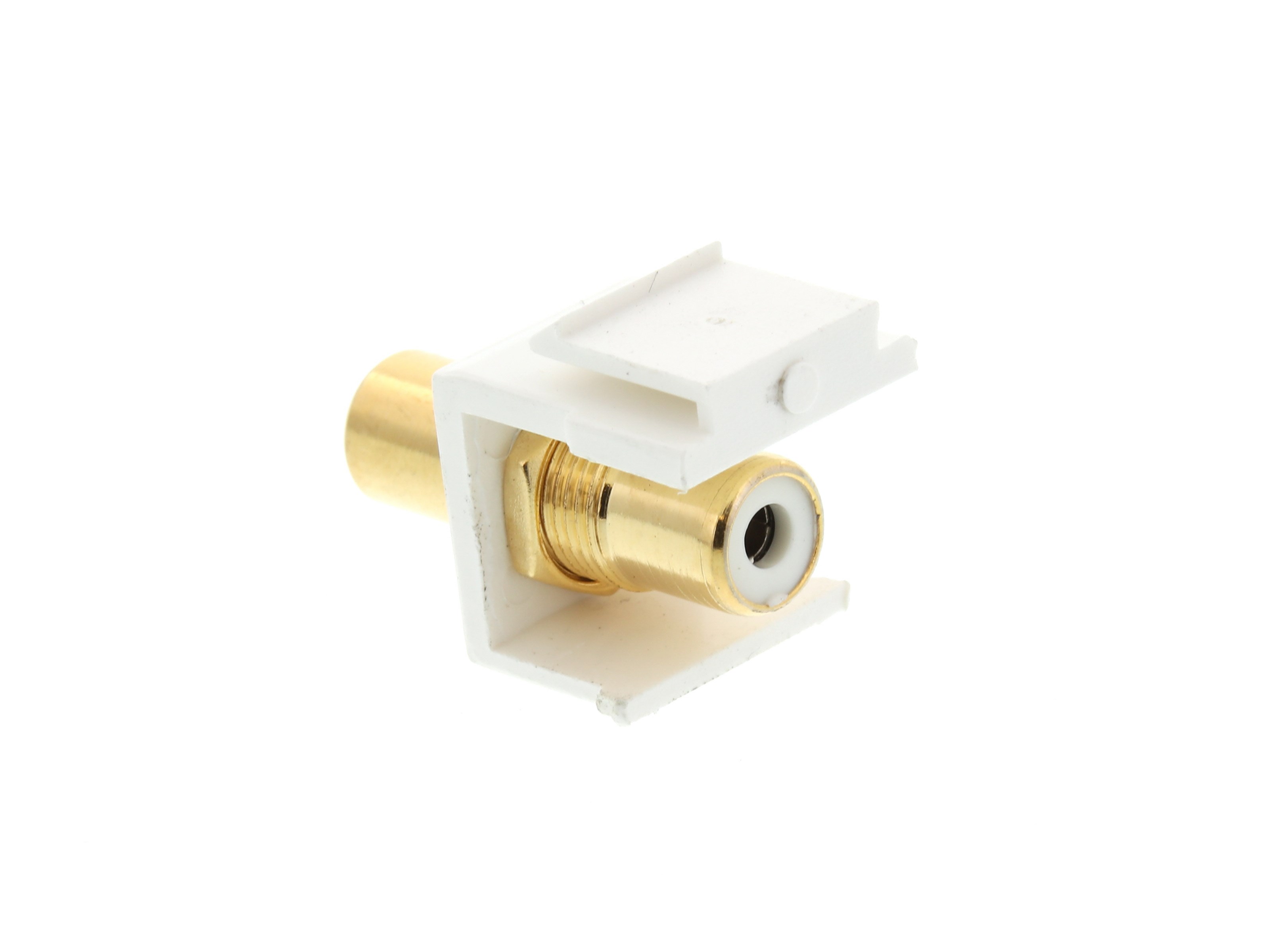 With the Networx® Feed Through Keystone Jack - RCA (Component / Composite) - White - Color Coded White you can easily run your component video or composite video/audio cables to a wall plate or patch panel with out having to terminate the cable. With our wide selection of blank wall plate and patch panel configurations you should easily be able to create your own custom audio video wall plate or patch panel configuration. Gold plated contacts provide excelent performance in addition to being corrosion resitant. Easily keep your system organized like a professional with our wide variety of color configurations, availble in Red, Green, Blue, White and Yellow for all of your audio and video needs.