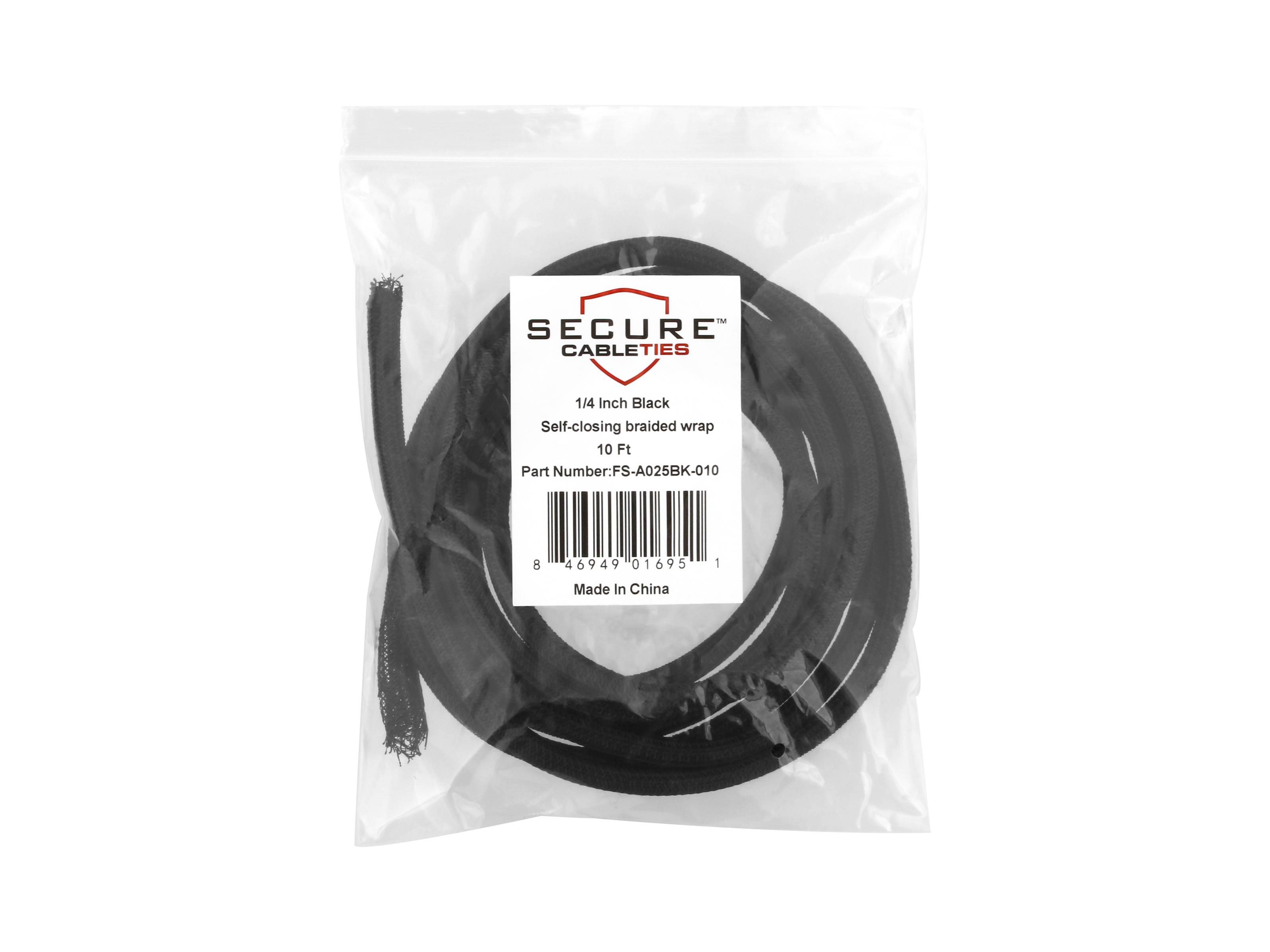 Secure™ 1/4 Inch Self Closing Braided Wrap 10FT - Black offer a simple and unique solution for bundling and organizing cables in a hassle free, efficient way. Braided wraps feature a self-closing lateral split and semi-rigid braided construction making installation easy and quick, without the need for additional fasteners. Combined with cable glands, braided wraps offer ideal protection by fully enclosing the cables and sealing the enter and exit points. The 25% overlap allow for additional coverage while maintaining flexibility without separating or contorting the braid.