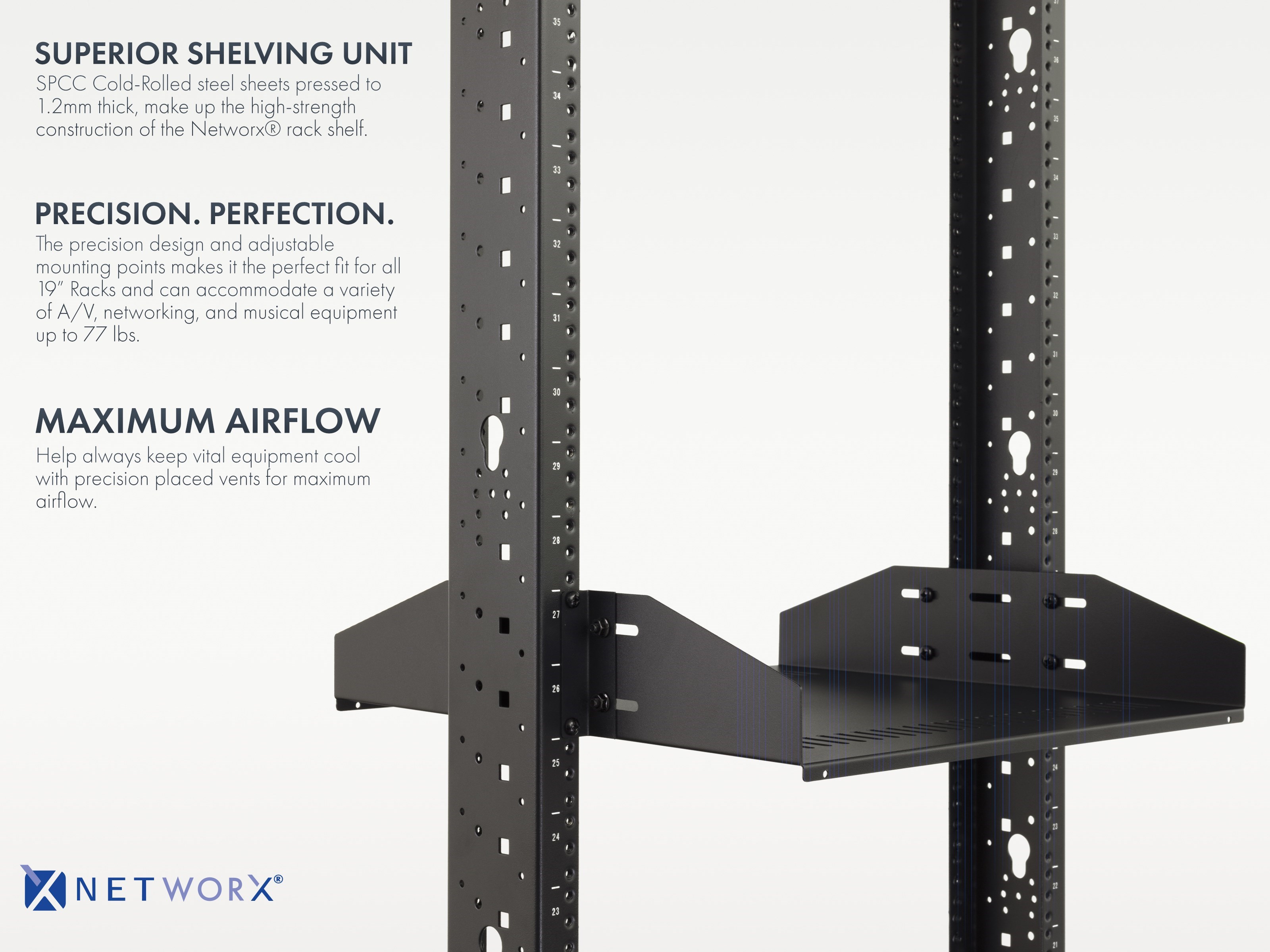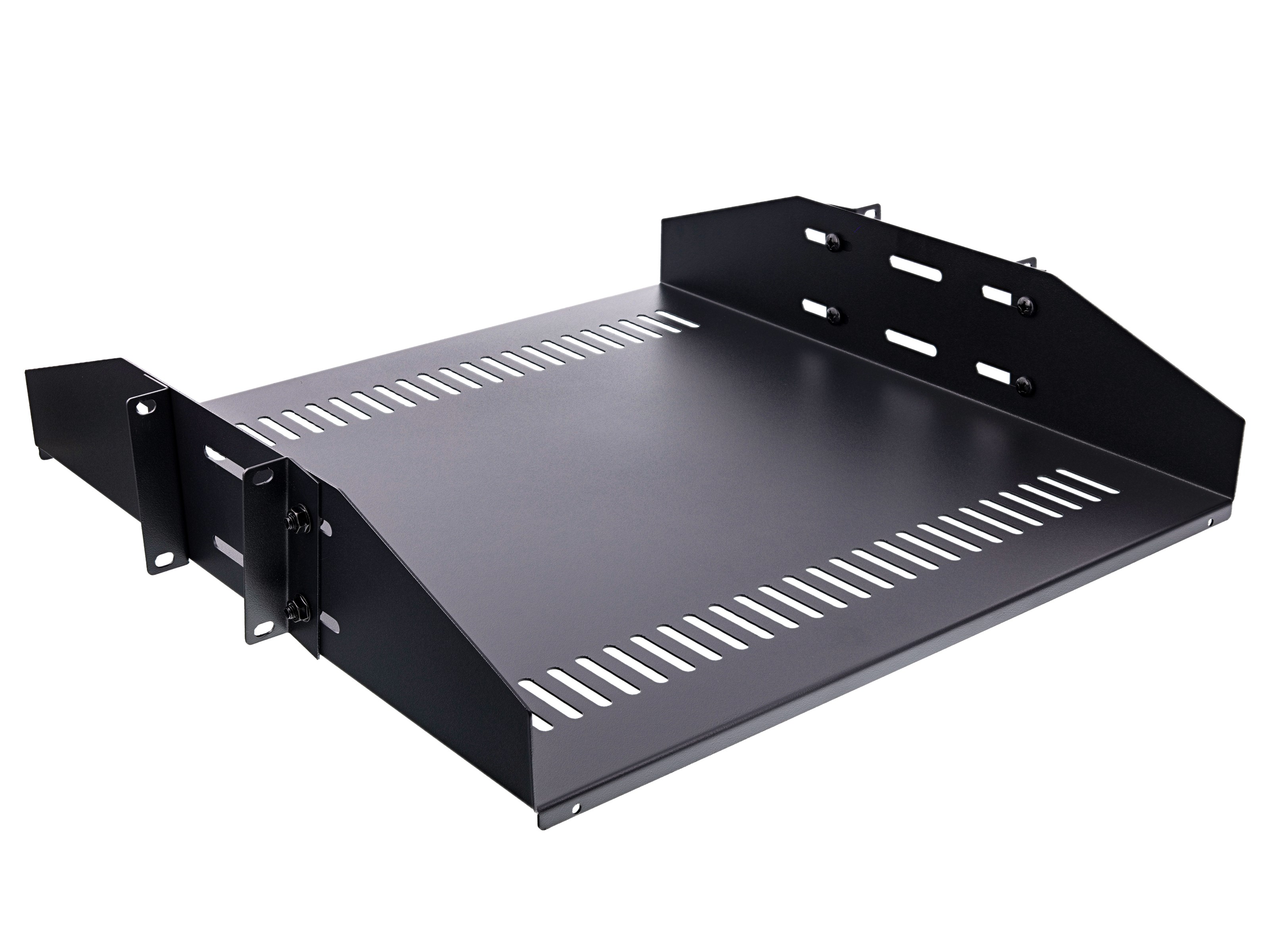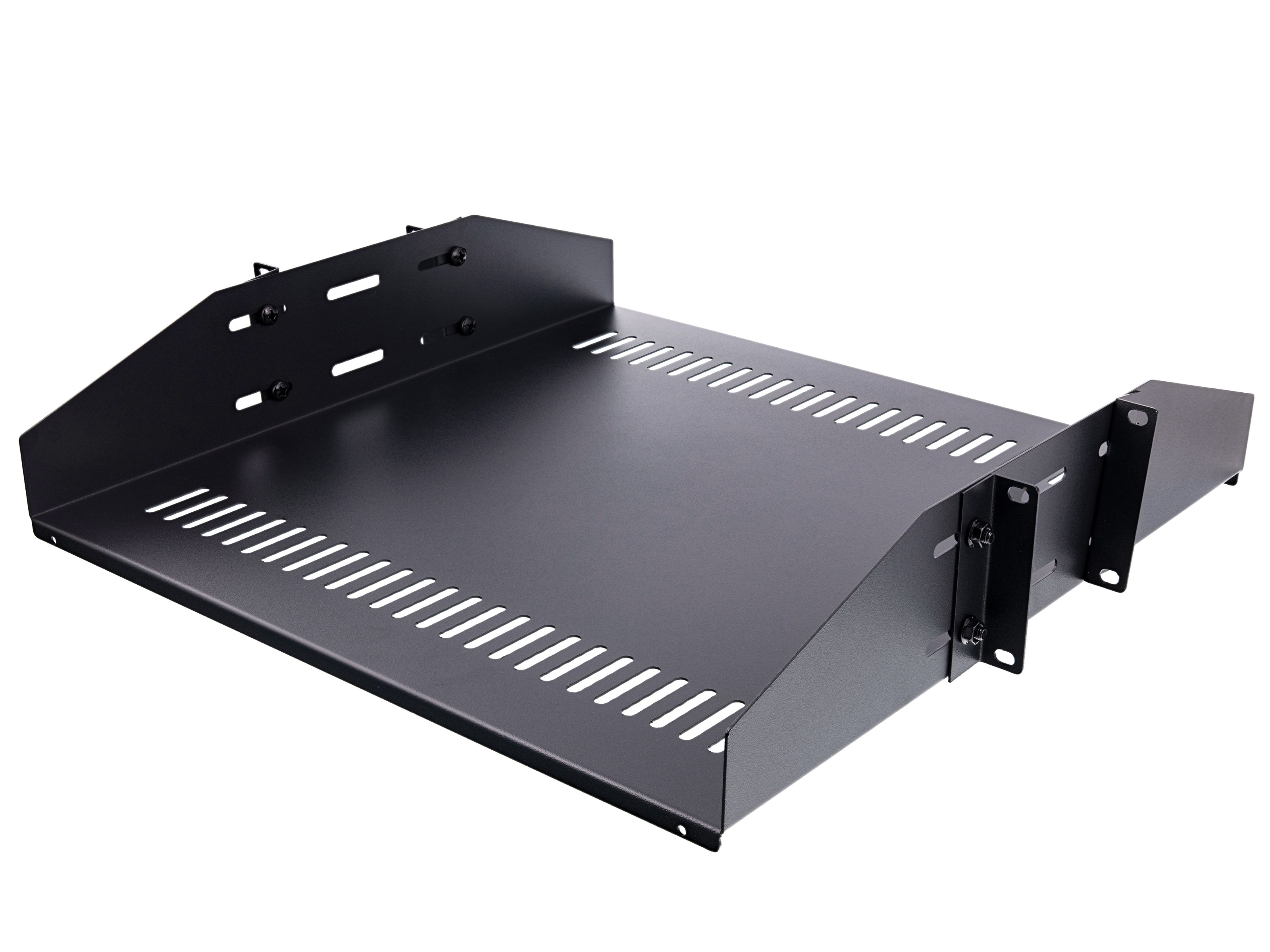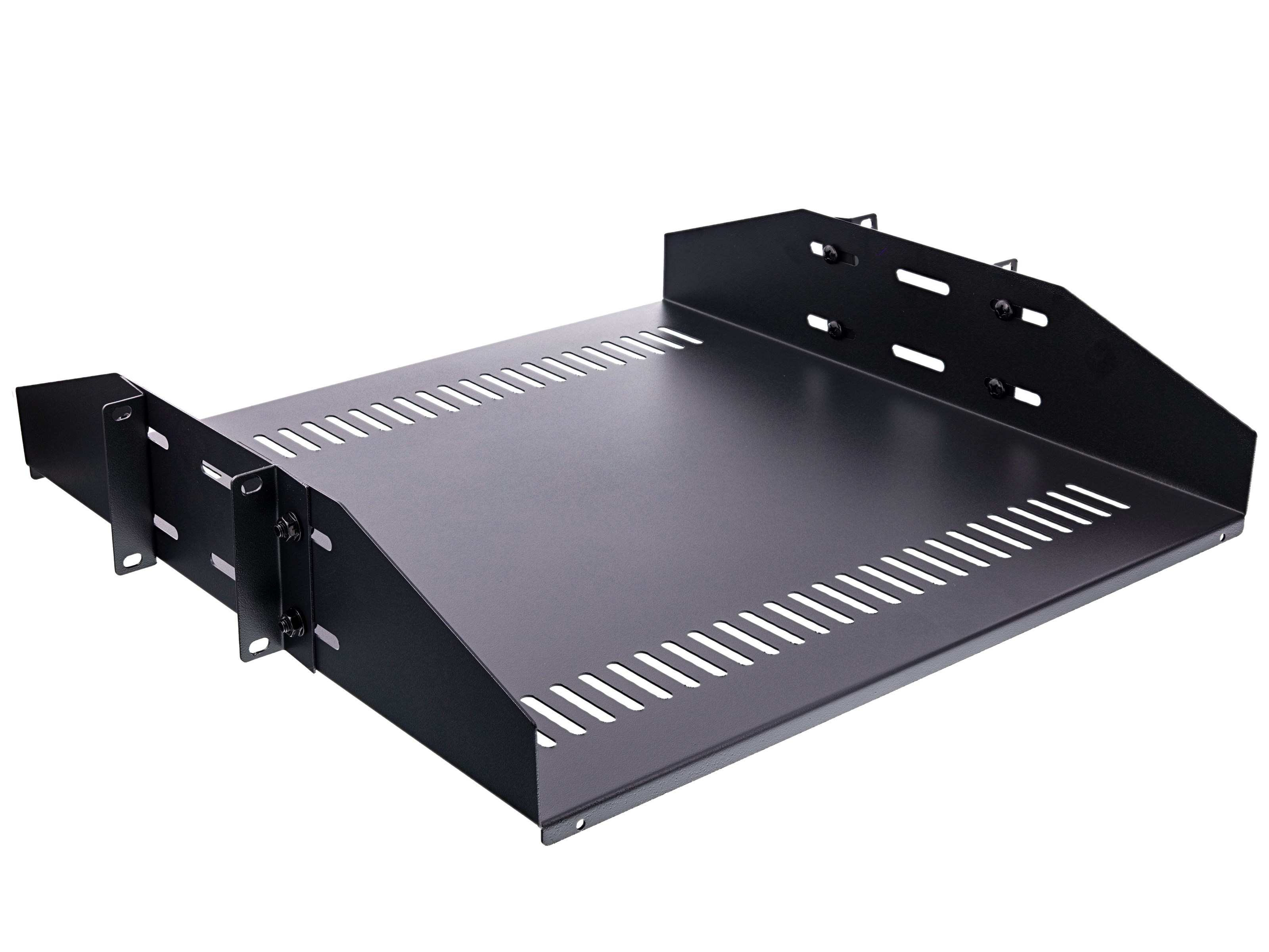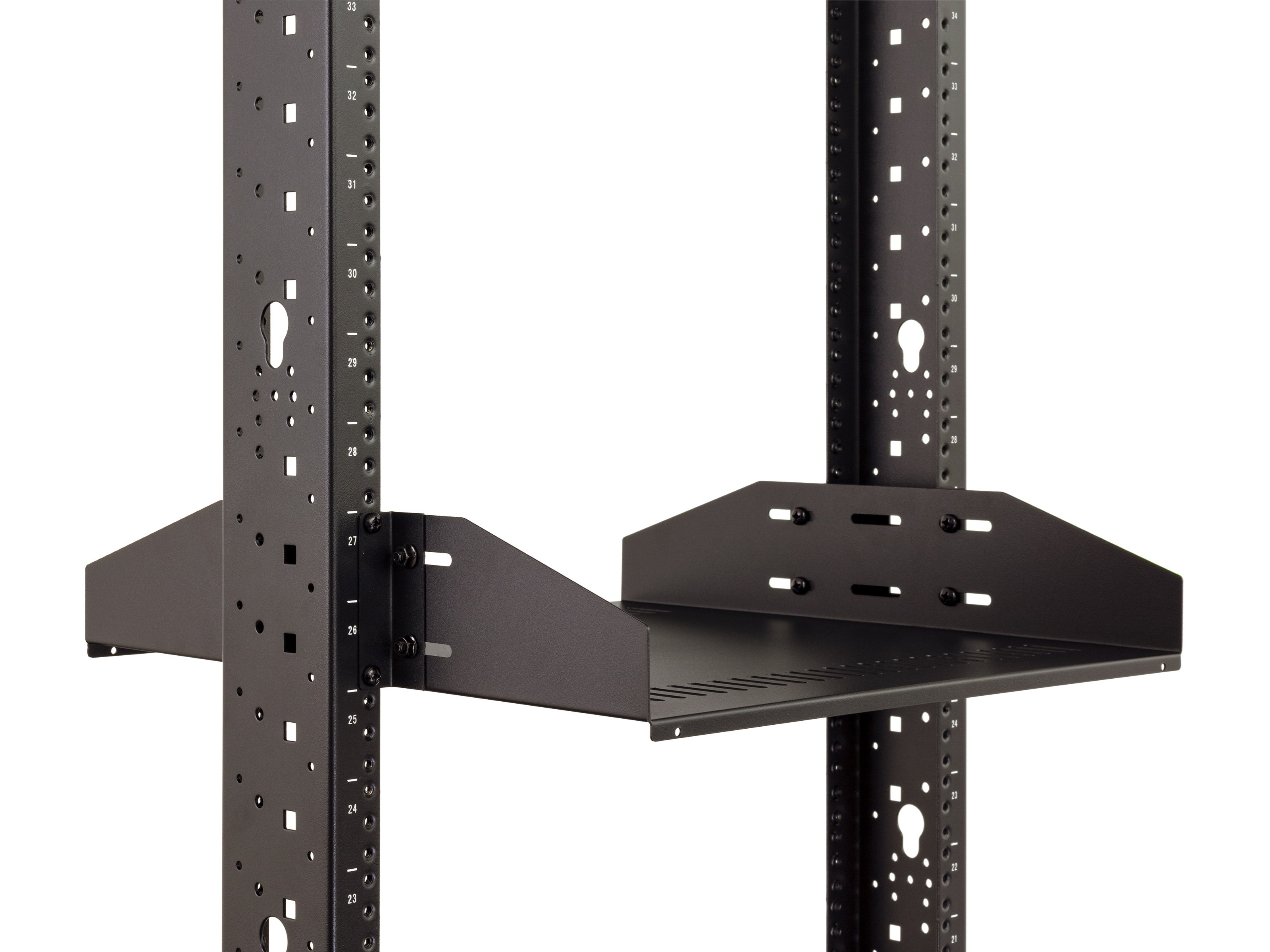 This is the ultimate shelf for 2-Post relay network racks. The vented shelf helps alleviate heat and promotes airflow while the center balance mounting adds some extra support when required.