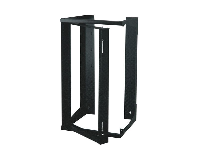These 2-Post Swing-Out Wall Mount Racks offer a hinged swing-out design for convenience for easy access of the voice and data equipment mounted on these racks. They are constructed of quality aluminum and are tapped for #12-24 mounting screws. They have a professional looking black microfinish and are available in 40" and 49" heights, as well as in an 18" and 24" depth.