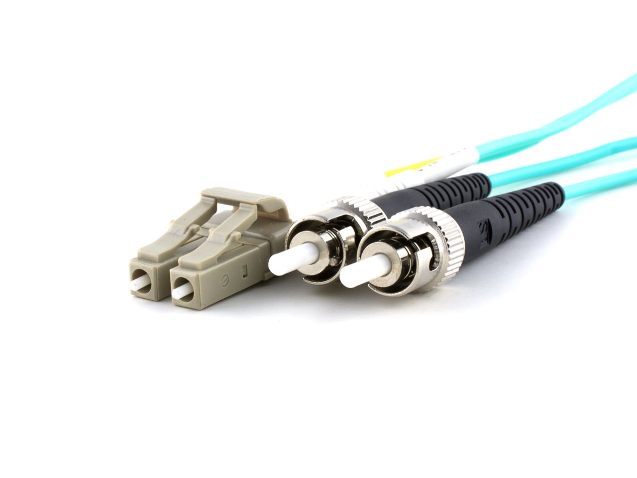 Networx® top quality 3m Multimode Duplex Fiber Optic Patch Cable (50/125) OM3 Aqua - Laser Opt - LC to ST, high-speed Multi-mode Optical Fiber cables will unleash the power of your Local Area Network. With ceramic ferrules and a 50/125 micron core, this cable is suitable for extremely high speed data transmissions such that you would find in 10 Gigabit Ethernet (10 Gb/s) networks. This 10 Gig fiber is OM3 Laser-Optimized. Each jumper cable is constructed using Genuine Corning Glass and shipped in individually sealed bags to ensure they arrive in perfect condition. Test results for the individual patch cable will be included in each bag. Color coded connectors assist with identification during the installation process to make installation easy for anyone.