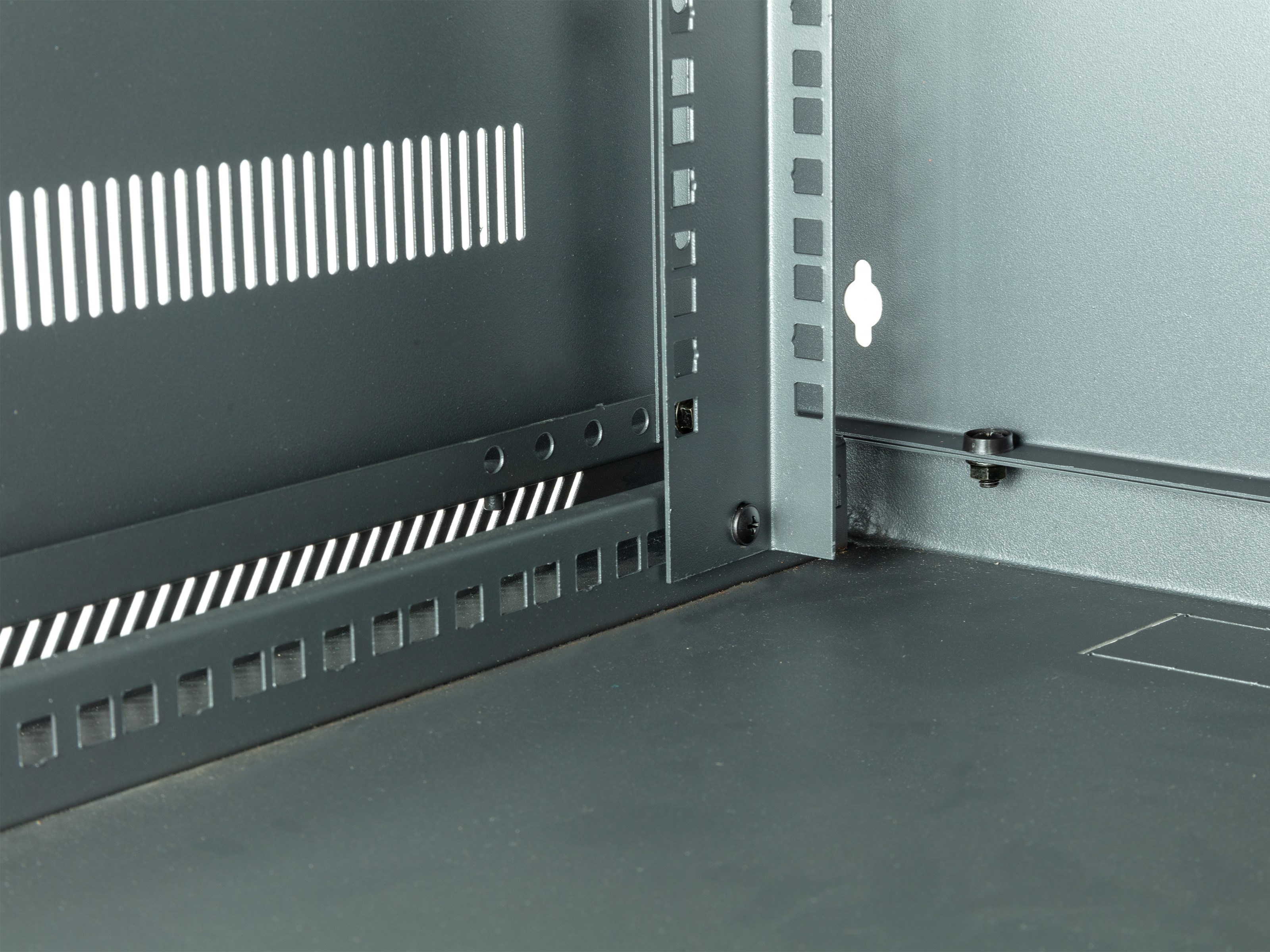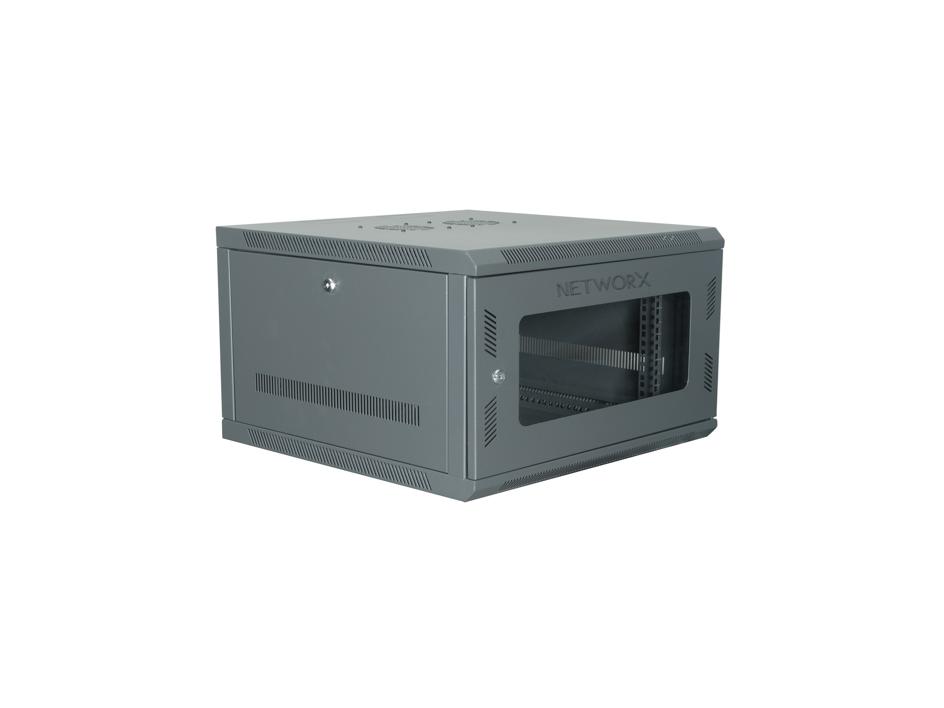Get organized with the 6U 201 Series of Wall Mount Cabinets from Networx®. This cabinet comes equipped with some of the most requested features. Starting with the basics, this Wall Mount Cabinet is constructed with high quality SPCC Cold-Rolled Steel Panels. All Networx® Wall Mount Cabinets come with removable side panels, which include vents to keep equipment cool, to allow for quick access to sensitive networking equipment. All front panels swing out for easy access to loaded network equipment and include a window of clear acrylic. Included with this high quality Wall Mount Cabinet is a single 120mm fan for ideal air movement to keep network equipment cool and running at peak performance. Adjustable rails allow for full customization to allow a variety of networking equipment to fit securely. The rails are punched to allow for the installation of M6 Cage Nuts. Both Side Panels and Front Door are lockable with the included set of keys. Top/Bottom/Rear knockouts for cable entry and exit. All racks are designed to house 19" rack mountable equipment.