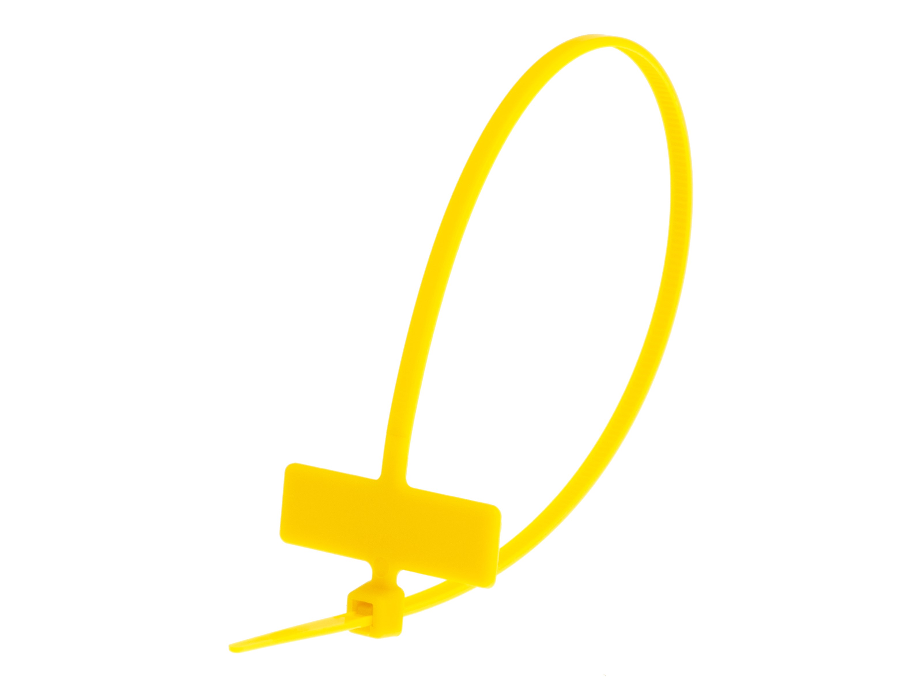 Secure™ 8 Inch Yellow Miniature Identification Cable Tie - 100 Pack are a natural choice for many applications due to their versatility and ease of installation in addition to their low price point. Nylon Cable Ties have virtually limitless applications for just about every industry. The addition of an identification flag is a great way to keep everything organized and easily identified at a later time. Suitable for most applications, our miniature identification cable ties have a continuous working temperature of -40°F to 185°F and can support a maximum weight of 18lbs. Available in wide variety of colors allowing virtually limitless options for color coded organization and easy identification. All Secure™ cable ties feature smooth rounded edges making these cable ties easy on the hands, in addition to a finely spaced gear rack allowing for exact adjustment ensuring a snug fit. Comprised of 6/6 Nylon with a compact molecular structure provides better weathering and sunlight resistance, higher melting point, superior colorfastness and excellent abrasion resistance creating a high quality, dependable cable tie with natural high resistance to insects, fungi, animals, molds, mildew, rot and many chemicals .