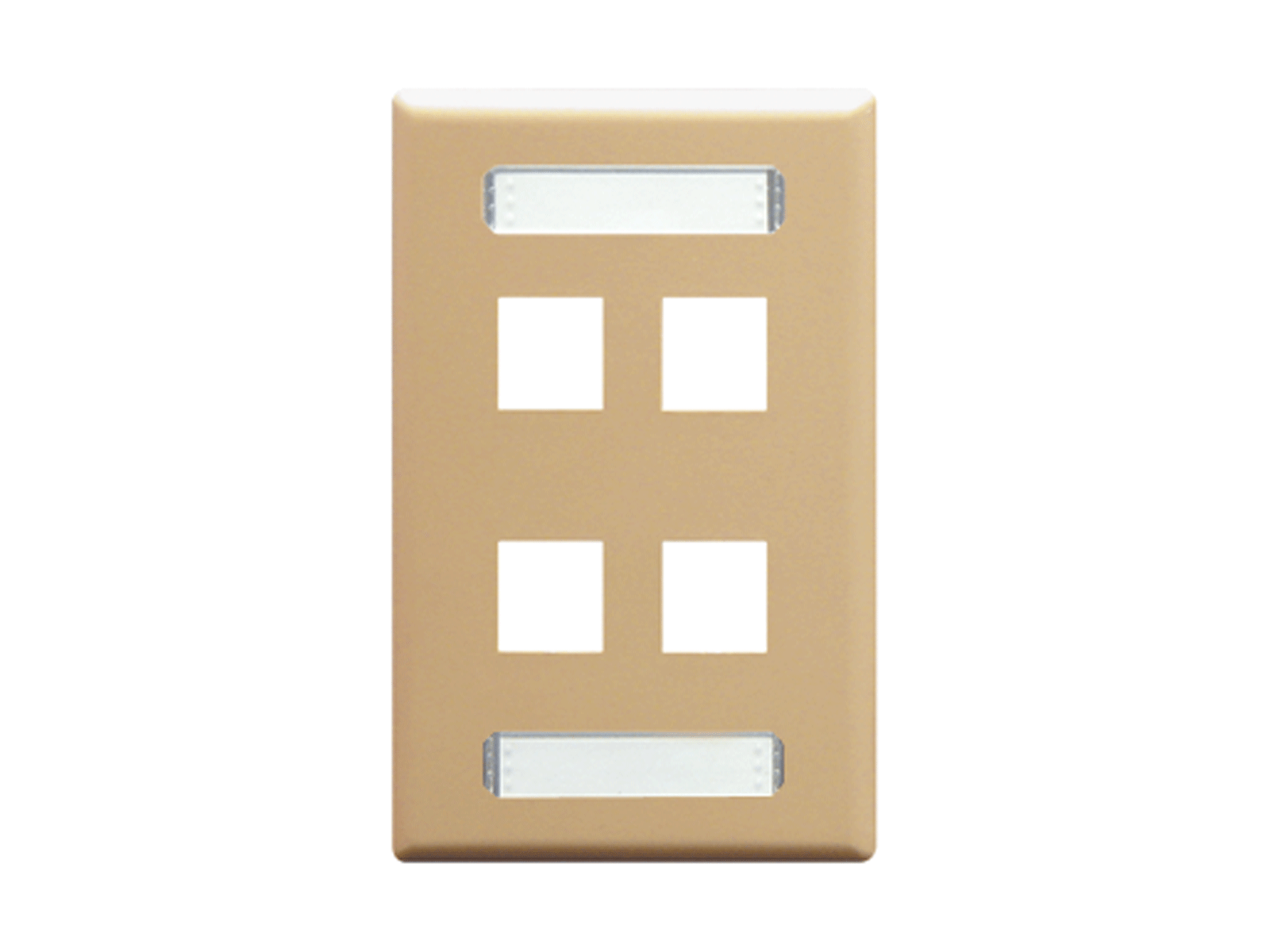 Classic single gang 4 port with ID. Configured to fit standard single gang outlet box. Designed to support the distribution of voice, data, and other communication needs to the work area for commercial or residential applications. Rugged and durable construction. Easy station identification with use of enclosed labels protected by clear plastic covers. Hidden mounting screws. Accommodates a wide variety of easy to snap-in modules, providing configuration flexibility.