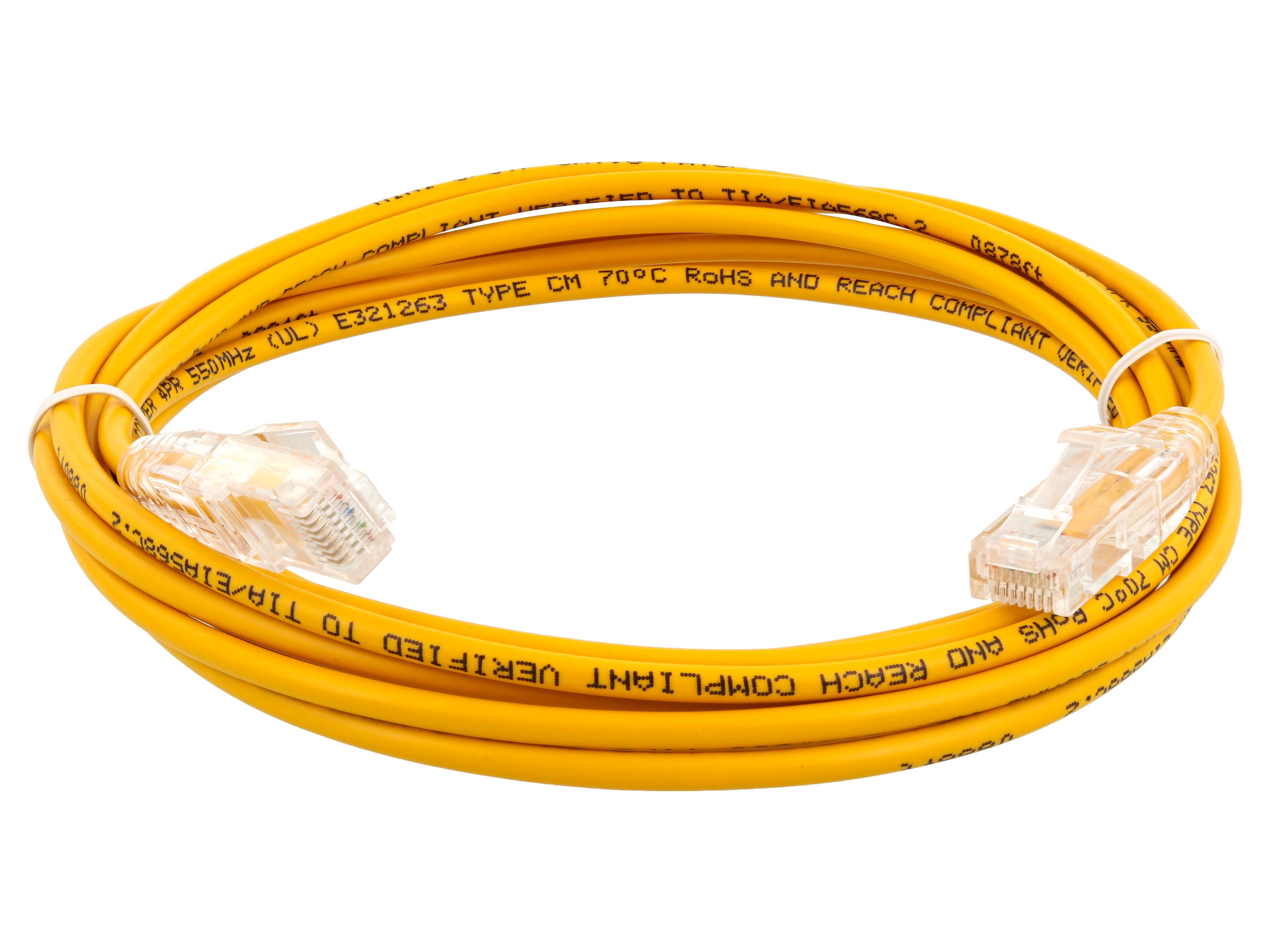 Cat 6 Mini Ethernet Patch Cable - 10 FT, Yellow, Booted