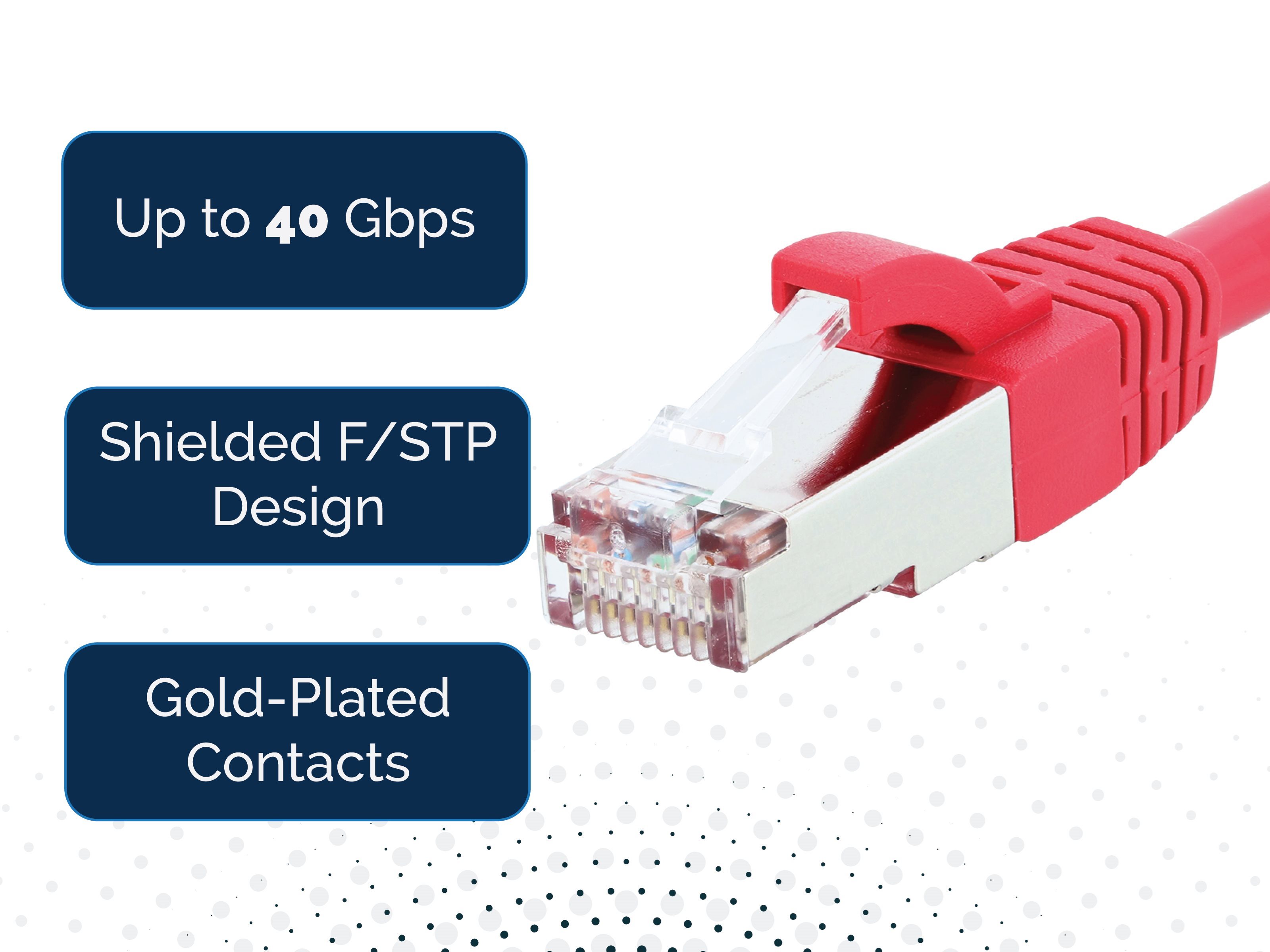 - The Red jacket not only adds visual appeal but also maintains the integrity expected of Category 8 cabling.