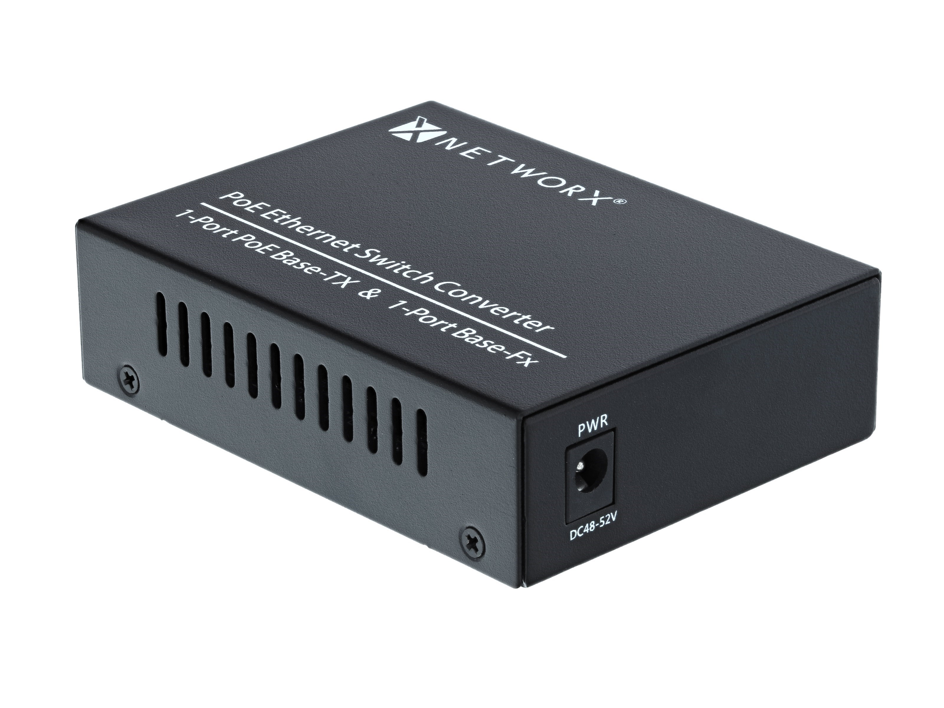 This Networx® Fiber Media Converter is classified as Power Sourcing Equipment (PSE) which combine data transfer over a fiber link and providing power to a Powered Device (PD) over CAT5e/CAT6 UTP Cable (Maximum length of 100 meters.)