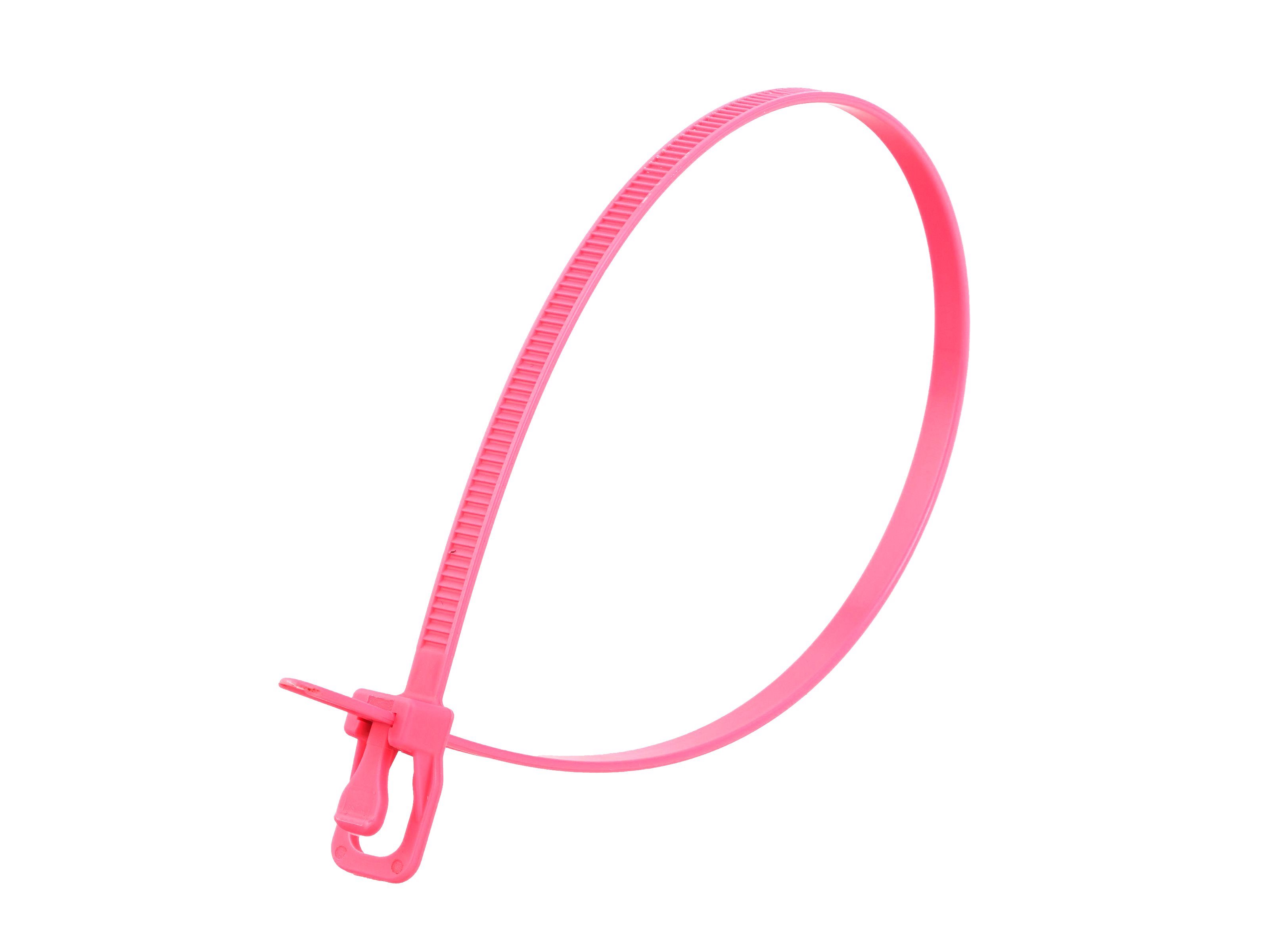 12 Inch Fluorescent Pink Releasable/Reusable Cable Tie - 100 Pack
