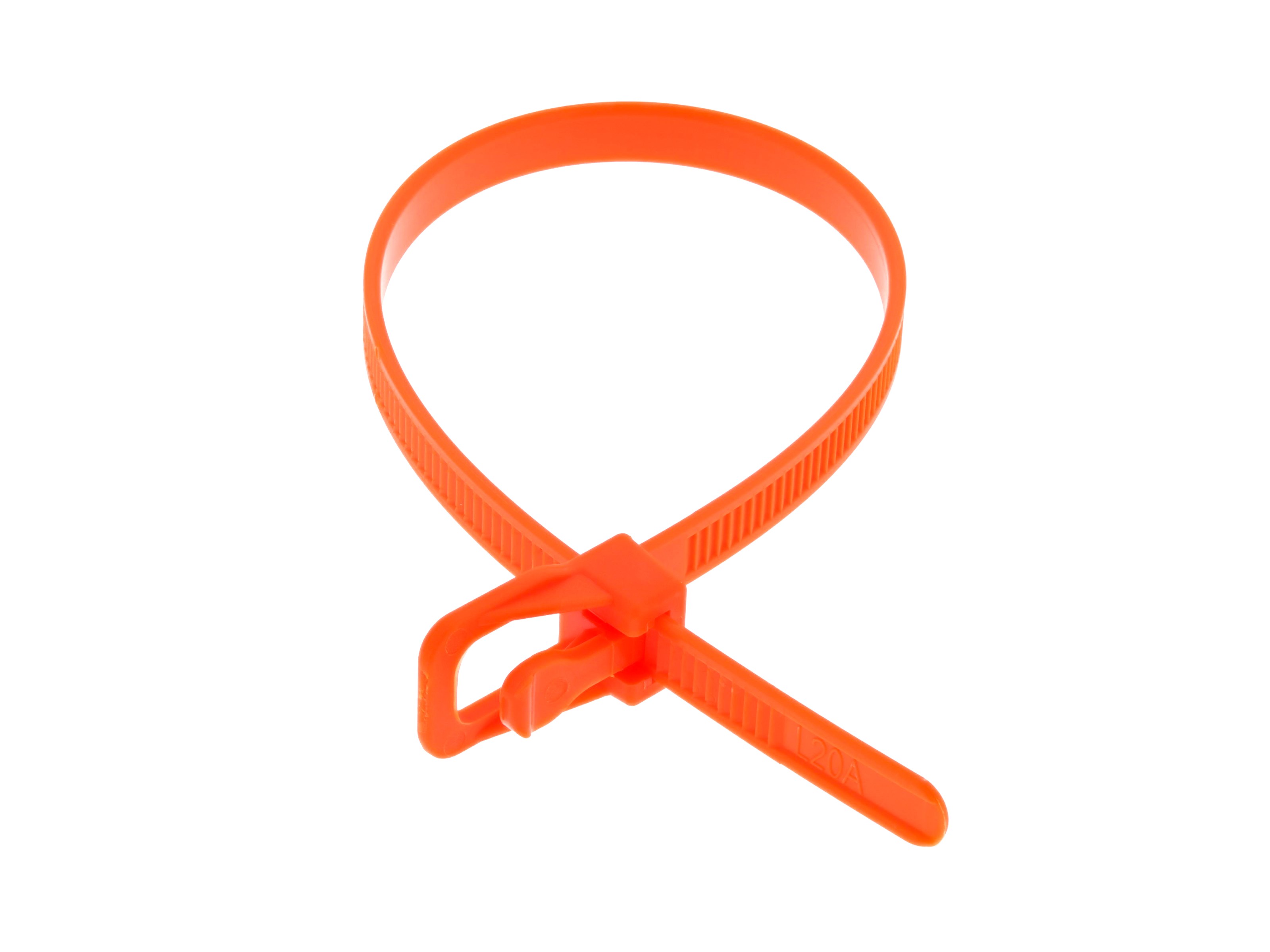 16 Inch 50 Lbs Fluorescent Orange Releasable/Reusable Cable Tie -100 Pack