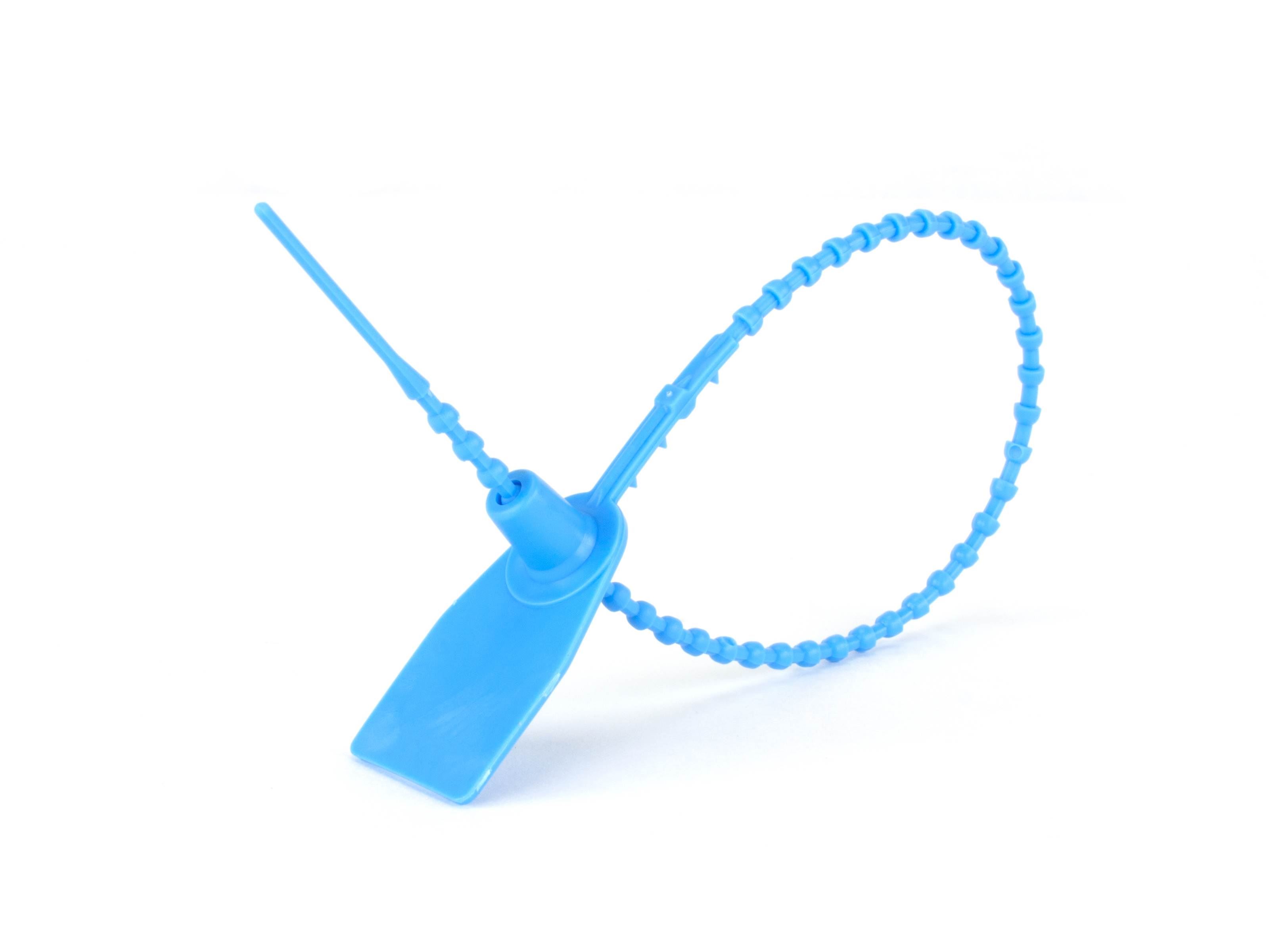 Pull tight security seals offer a tamper evident solution for sealing truck trailers, containers, airline security boxes, and various other cargo holds. Made of polyethylene these security plastic seals have a breaking strength of up to 39 lbs., have a metal locking device and come without laser etched numbers or printed names. To use simply thread the end of the seal through the closure and into the area marked "enter" at the end of the seal and pull tight. Requires a cutting tool to remove.