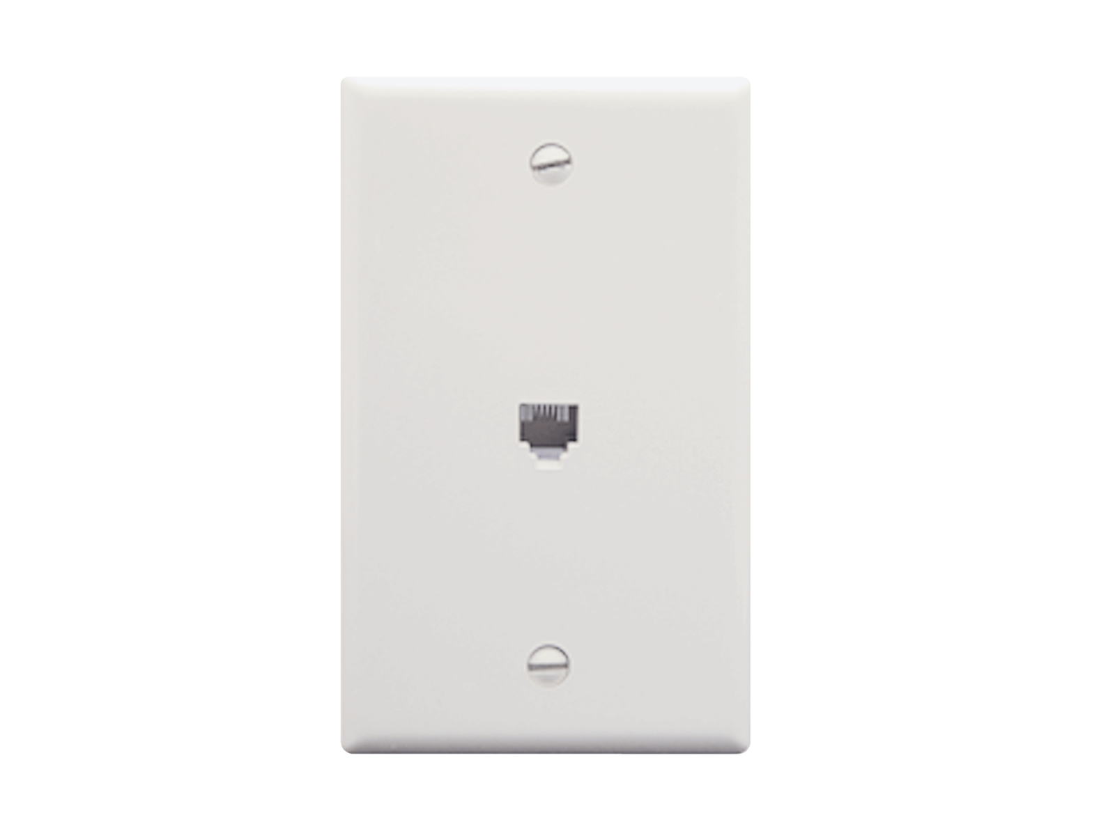 Configured to fit standard single gang outlet box. Designed for all voice connectivity to the work area for commercial or residential applications. Provided with traditional screw down terminals for voice connectivity on the rear.